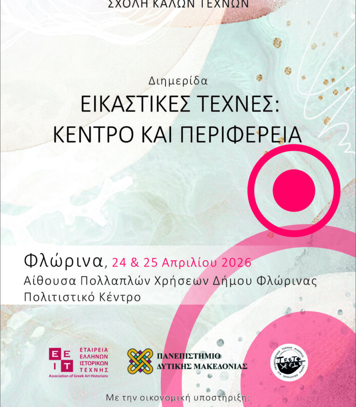 Η Εταιρεία Ελλήνων Ιστορικών Τέχνης και το Τμήμα Εικαστικών και Εφαρμοσμένων Τεχνών, της Σχολής Καλών Τεχνών του Πανεπιστημίου Δυτικής Μακεδονίας με την οικονομική υποστήριξη του Υπουργείου Πολιτισμού, της Περιφέρειας Δυτικής Μακεδονίας – Περιφερειακής Ενότητας…