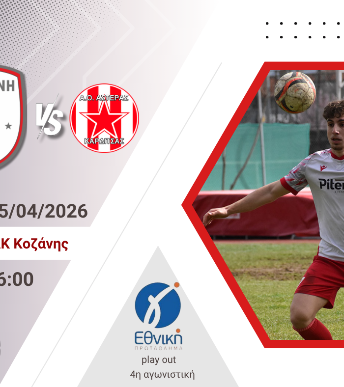 Την Κυριακή στο ΔΑΚ Κοζάνης και ώρα 4μμ η Κοζάνη δίνει έναν από τους πιο καθοριστικούς αγώνες της χρονιάς απέναντι στον Αστέρα Καρδίτσας και το μήνυμα είναι ένα: νίκη και μόνο νίκη. Η ομάδα…