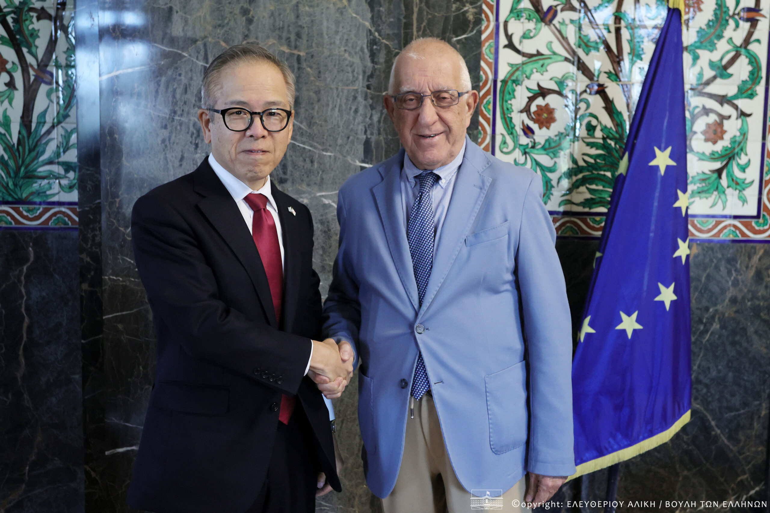 Ο Πρόεδρος της Βουλής των Ελλήνων, κ. Νικήτας Κακλαμάνης, συναντήθηκε σήμερα με τον Πρέσβυ της Ιαπωνίας, κ. Ito Koichi. O Πρόεδρος της Βουλής επεσήμανε ότι «οι διμερείς σχέσεις με την Ιαπωνία βρίσκονται σε εξαιρετικό επίπεδο, γεγονός που επιβεβαιώνεται από την ανταλλαγή μεγάλου αριθμού επίσημων επισκέψεων. Μια τέτοια επίσκεψη ήταν και η υποδοχή της Α.Μ. Πριγκίπισσας Κάκο στην Ελλάδα με αφορμή το έτος Πολιτισμού και Τουρισμού Ελλάδας-Ιαπωνίας, αλλά και τη συμπλήρωση 125 ετών διπλωματικών σχέσεων».