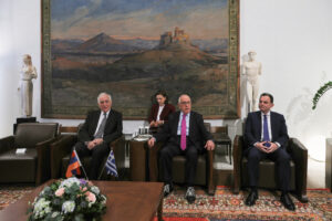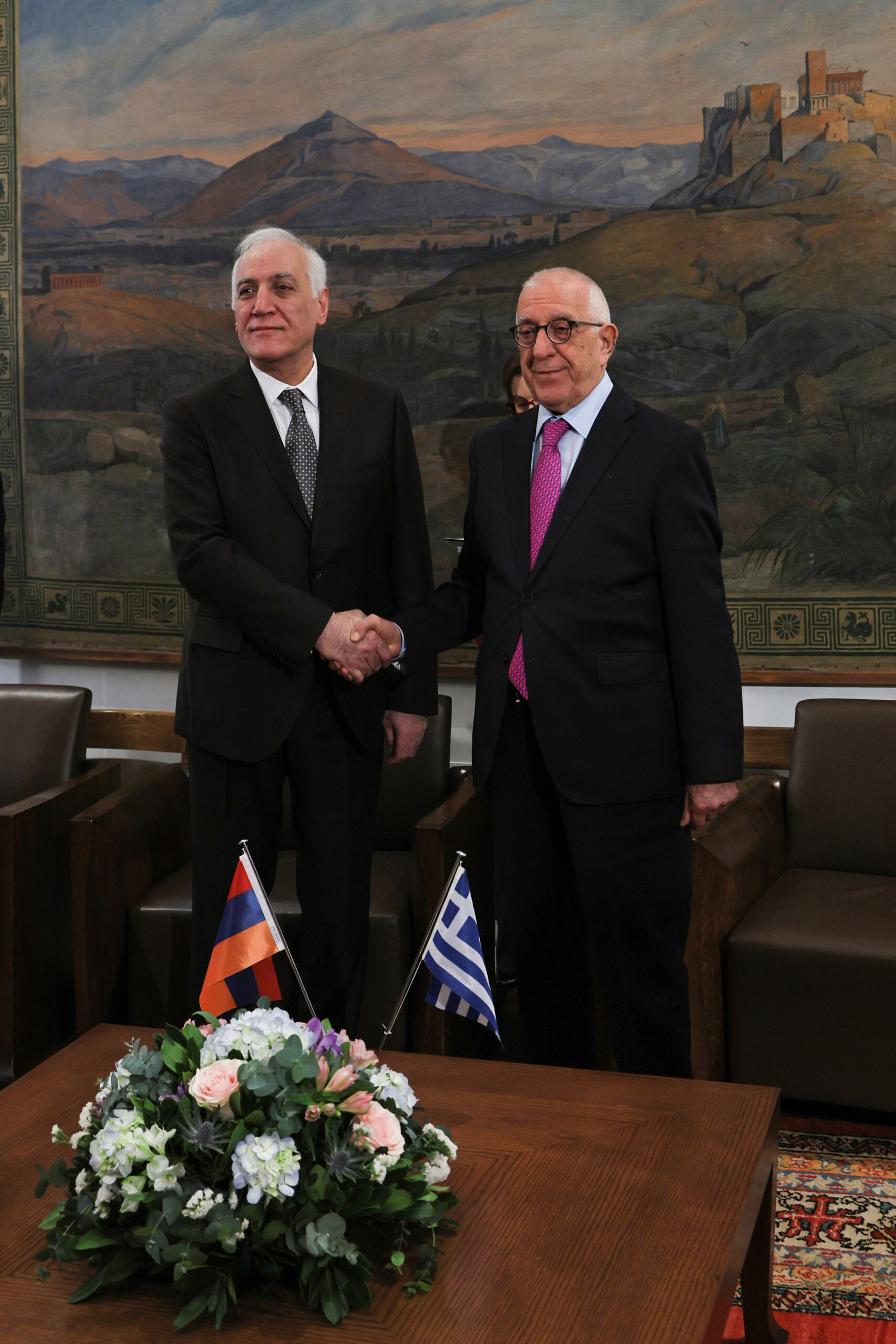 Το άριστο επίπεδο των σχέσεων Ελλάδας και Αρμενίας και τους ειλικρινείς δεσμούς που ενώνουν τις δύο χώρες από τα βάθη της ιστορίας, τόνισε ο Πρόεδρος της Βουλής των Ελλήνων, κ. Νικήτας Κακλαμάνης στη σημερινή συνάντηση που είχε με τον Πρόεδρο της Δημοκρατίας της Αρμενίας, κ. Vahagn Khachaturyan.