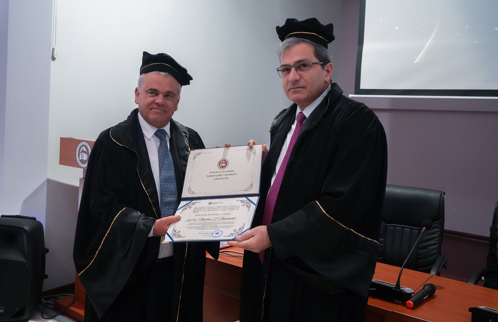 Το Πανεπιστήμιο “Eqrem Cabej” του Αργυροκάστρου απένειμε τον τίτλο του Επίτιμου Διδάκτορα (Doctor Honoris Causa) στον Πρύτανη του Πανεπιστημίου Δυτικής Μακεδονίας, Καθηγητή Θεόδωρο Θεοδουλίδη, και στην Αντιπρύτανι Ολιστικής Μέριμνας και Διεθνών Σχέσεων, Καθηγήτρια Ελένη Γρίβα, στο πλαίσιο επίσημης τελετής που πραγματοποιήθηκε στο Πανεπιστήμιο “Eqrem Cabej”.