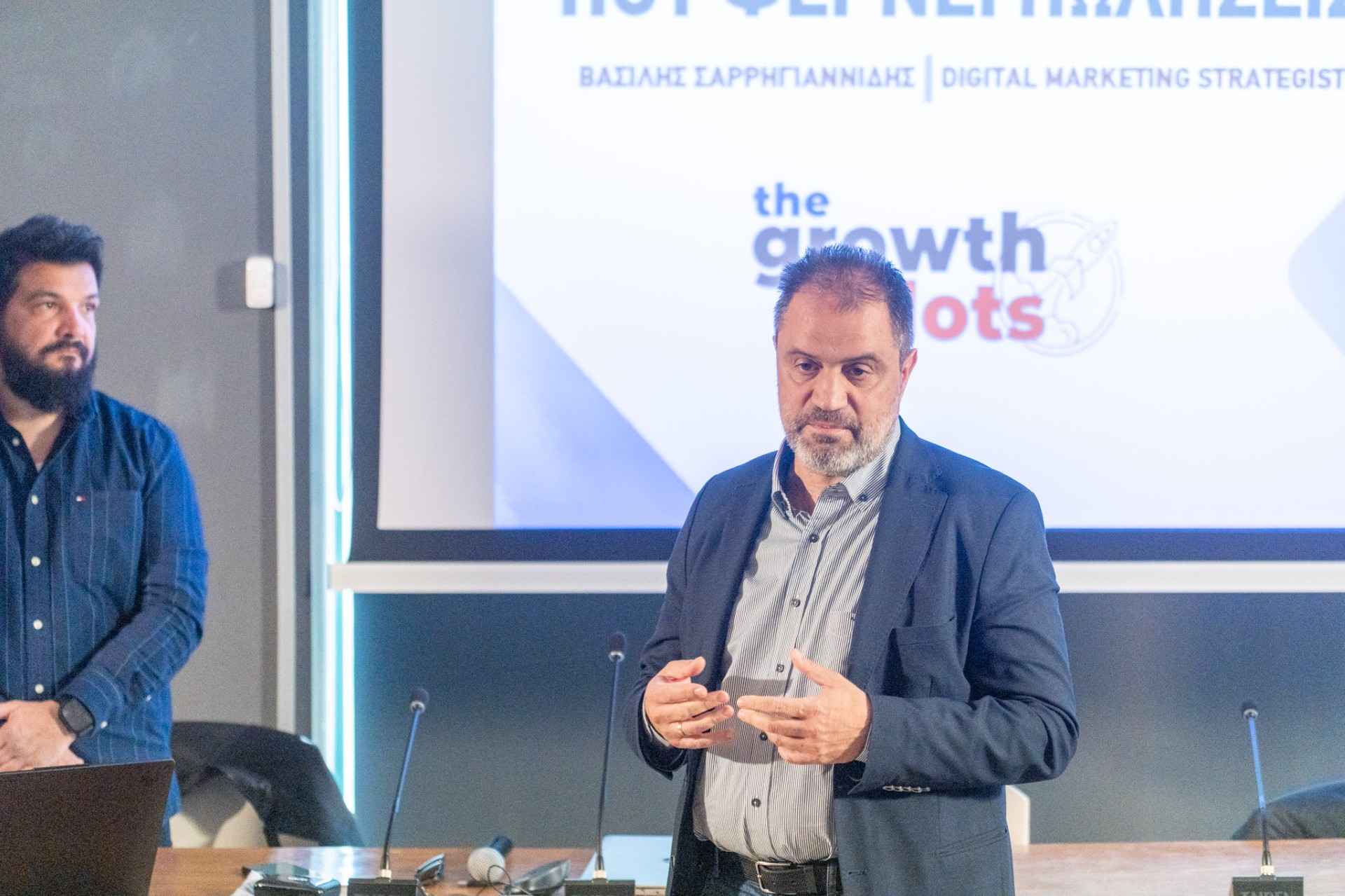 Κεντρικοί εισηγητές της ημερίδας ήταν οι ιδρυτές της ομάδας Growth Pilots, Βασίλης Σαρρηγιαννίδης (Digital Marketing Strategist) και Ηρακλής Ασλανίδης (Digital Marketing & Growth Consultant), οι οποίοι ανέλυσαν με πρακτικά παραδείγματα πώς η Τεχνητή Νοημοσύνη (AI) και η σωστή διαχείριση των κοινωνικών δικτύων μπορούν να μεταμορφώσουν μια επιχείρηση.