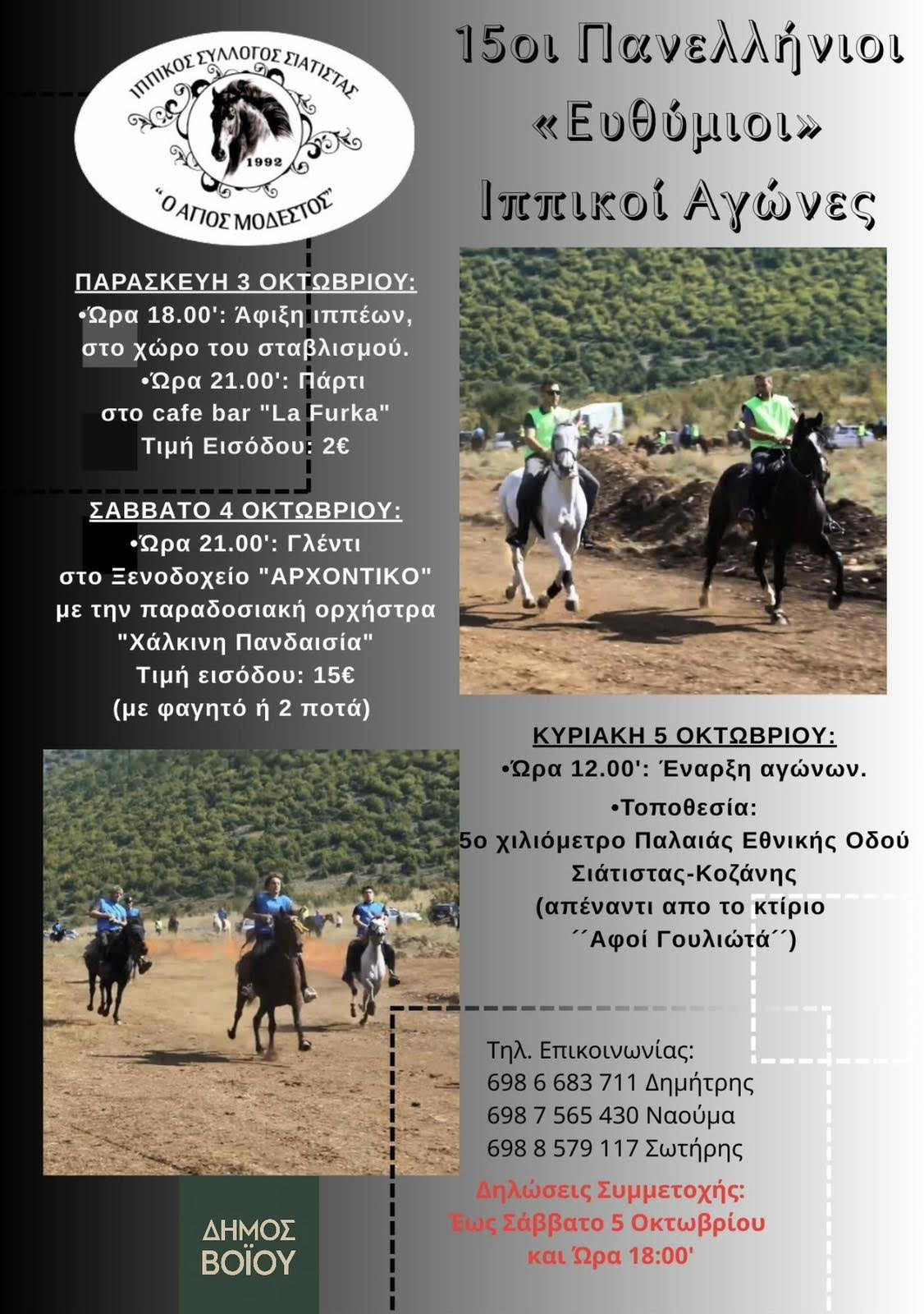 Δήμος Βοΐου: 15οι Πανελλήνιοι «Ευθύμιοι» Ιππικοί Αγώνες από τον Ιππικό Αθλητικό Πολιτιστικό Σύλλογο Σιάτιστας «Ο ΑΓΙΟΣ ΜΟΔΕΣΤΟΣ»