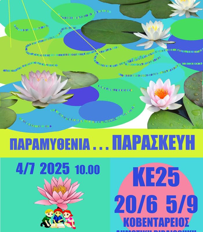 ΠΑΡΑΜΥΘΕΝΙΑ ΠΑΡΑΣΚΕΥΗ 4 ΙΟΥΛΙΟΥ, 10:00 ΠΜ - 12:00 ΜΜ ΣΤΟ ΔΗΜΟΤΙΚΟ ΚΗΠΟ Με την Ελένη Γκατζογιάννη και τον Σύλλογο Φίλων της Βιβλιοθήκης Σε αυτό το εργαστήρι θα ταξιδέψουμε ... μέσα από τα παραμύθια! Ασία,…